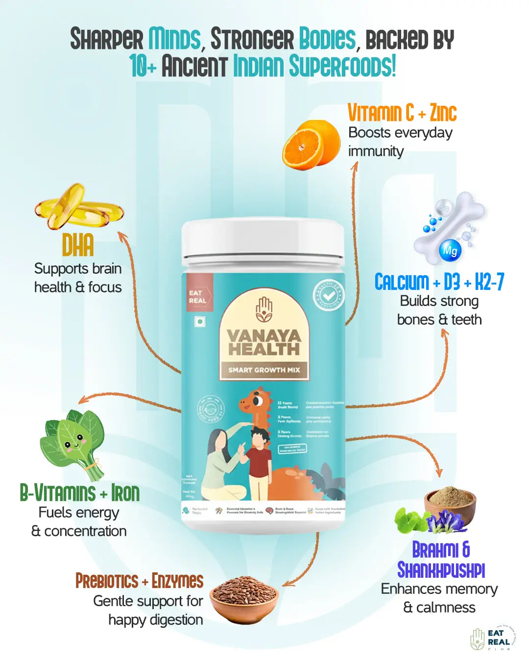 ”Since switching to Vanaya Health Smart Growth Mix, I’ve noticed a remarkable improvement in my child’s energy levels and focus. It’s comforting to know they are getting pure, natural nutrition every day.”